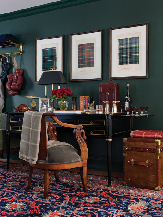 Discover After Hours, a collection devoted to games, cocktails, and convivial company. Featuring Luxe Mahjong, Dominoes, and Poker sets, vintage barware, MATCH Pewter rocks glasses, and vintage Gucci stirrup cups, it celebrates refined play and spirited indulgence. The mood evokes a speakeasy with a 1920s roulette and poker table, vintage boxing gloves, black watch plaid, and a 19th century military campaign chest, creating an atmosphere where tradition, style, and entertainment meet.
