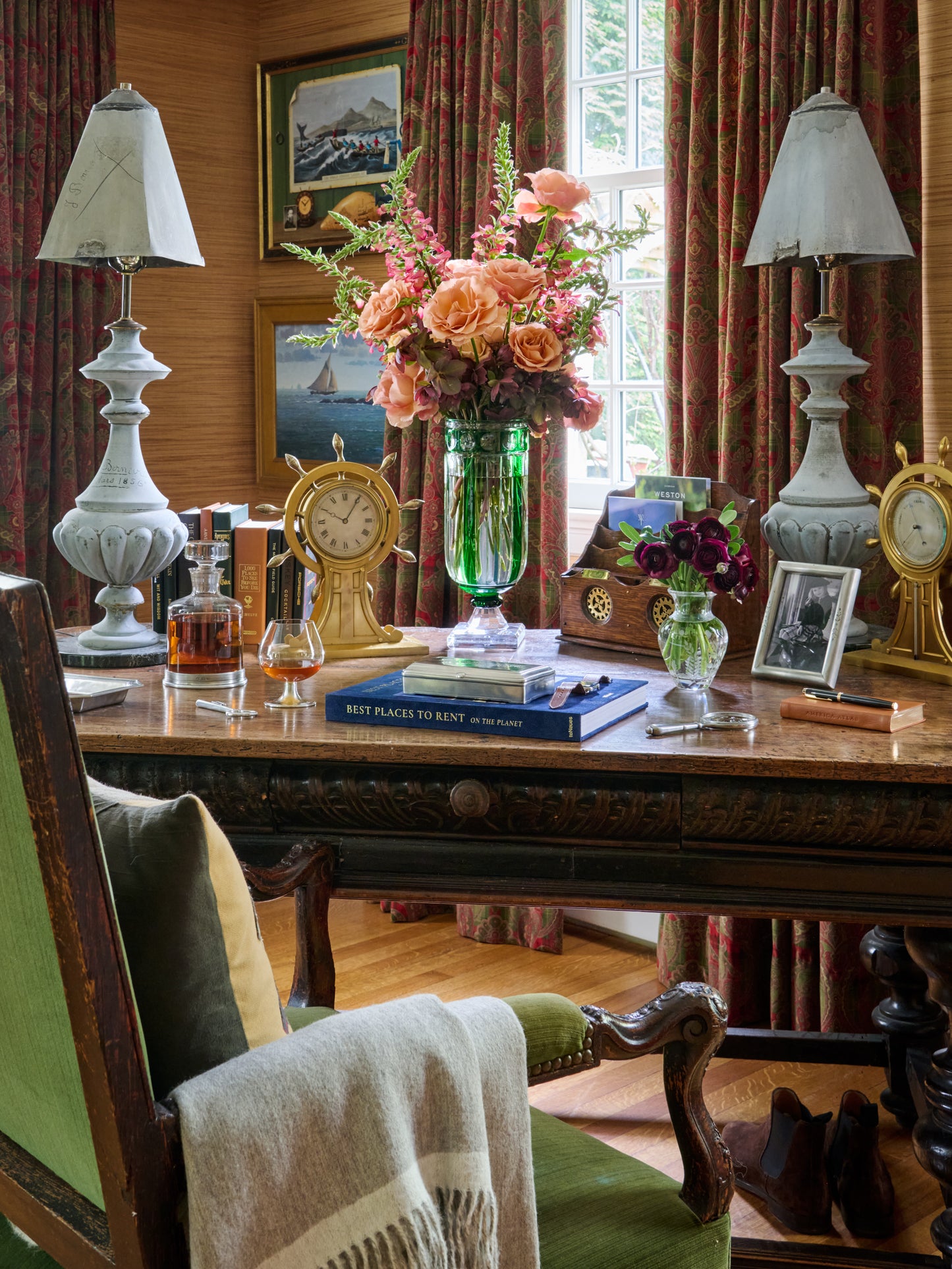 Vintage 1870s English Maritime Clock & Barometer Set