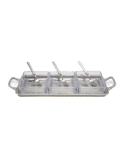 MATCH Pewter Crudité Tray with Crystal Inserts and Handles