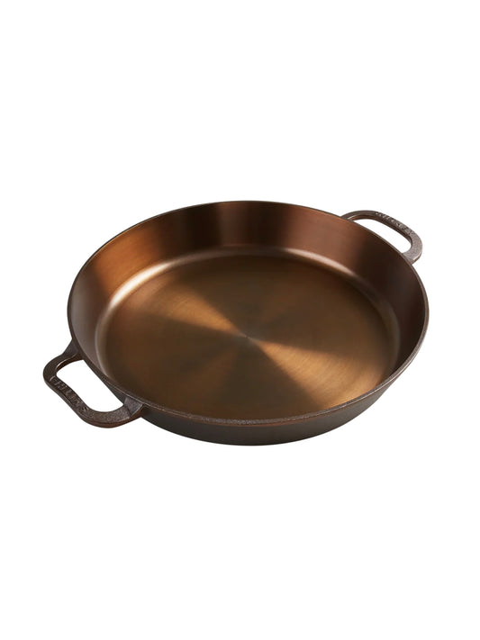 Americans used them out on the range and, like most vernacular, terms adapt to time and use. A skillet and a frying pan, stateside or across the pond, simply refer today to heavy, most often, cast iron pans used for frying and sauteing–it is the kitchen workhorse of all cooking vessels. Most common in 10” and 12” sizes, frying pans, and skillets are heavy stove-top beasts that can also be used inside of an oven or even over a wood-fired, gas, or charcoal grill. Staub, the world’s leading enameled cast iron company, has a variety of sizes in single-handled, double-handled, lidded, smooth, and ridged options that are handsome enough to go straight from the cooking source to the table for a fashionable all-in-one cooking, serving, and easy-to-clean experience. If cost is the primary driver in the decision to buy a heavy-duty skillet, both Field and Nest Homewares have frying pan options that are good-looking, heirloom quality, and well-priced, albeit they do require a bit more care.