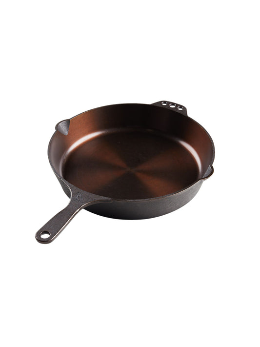 Back in the day, the British referred to a skillet as a heavy-footed cooking vessel traditionally used to cook over coals in a kitchen hearth.