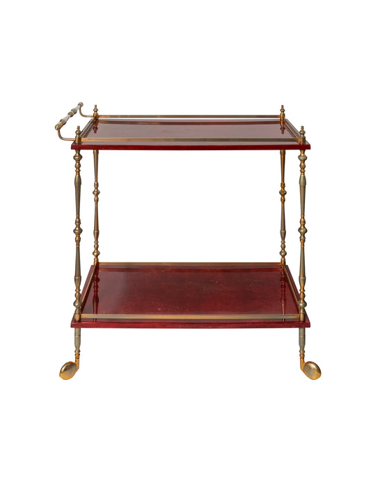 Vintage Retro Aldo Tura Red Lacquered Goatskin Bar Cart