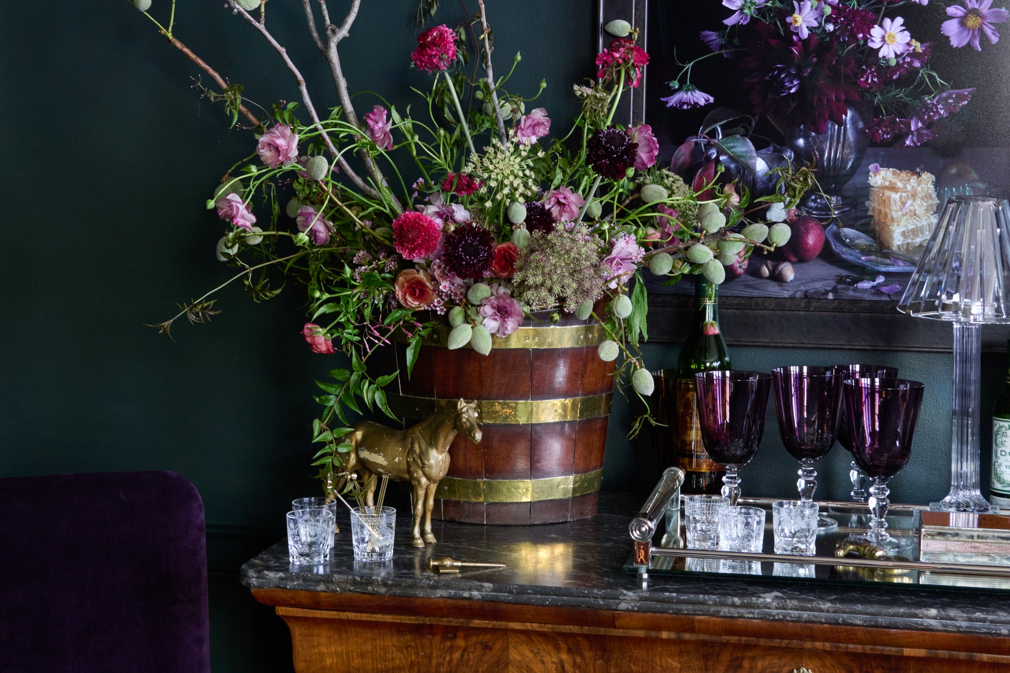 This Holiday collection celebrates the intersection of heirloom quality and modern life. Celebrate the season with History Loves Company Holiday 2025, a dramatic holiday tableau where a pewter reindeer and sleigh of crimson roses set the scene for elegant living. MATCH Pewter liqueur glasses, vintage silver and gilt plateau trays, and Art Deco barware glow beneath a French floral still life. Oversized Assouline travel books rest beside a 19th century bust, while heirloom silver bells, a vintage gold horn, and an 1820s Sheffield wine cooler add festive grandeur. A rare English Imperial Measure, now holding bottles of wine, completes this inspired vision of timeless holiday beauty.