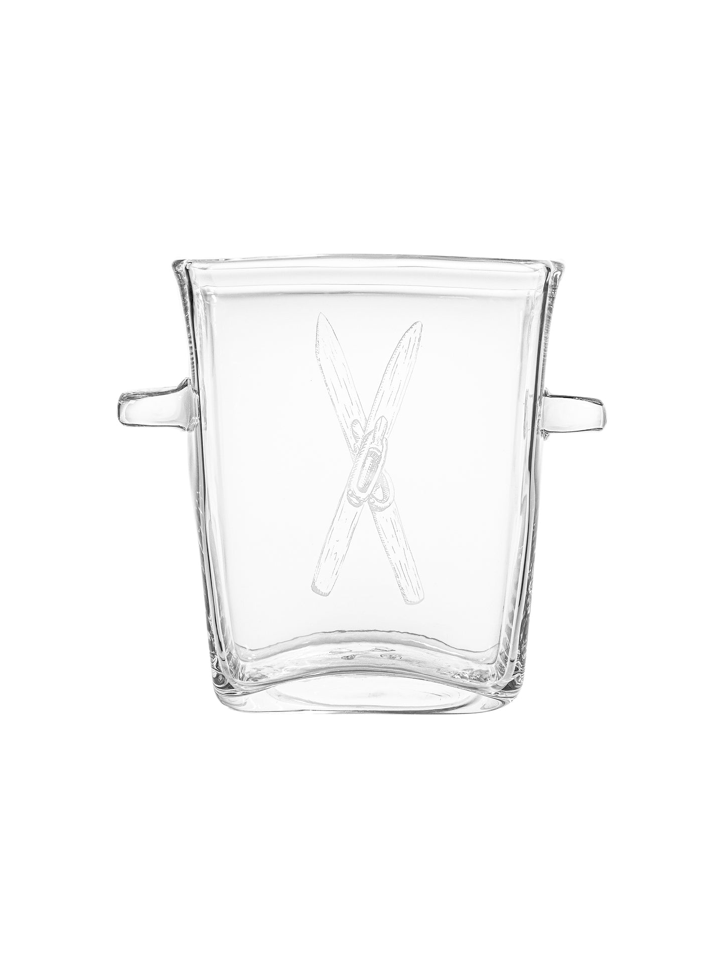 A Weston Table exclusive Simon Pearce signature Woodbury chiller with contemporary angles with Weston Table's original ski illustration for après ski enthusiasts and winter sports lovers.