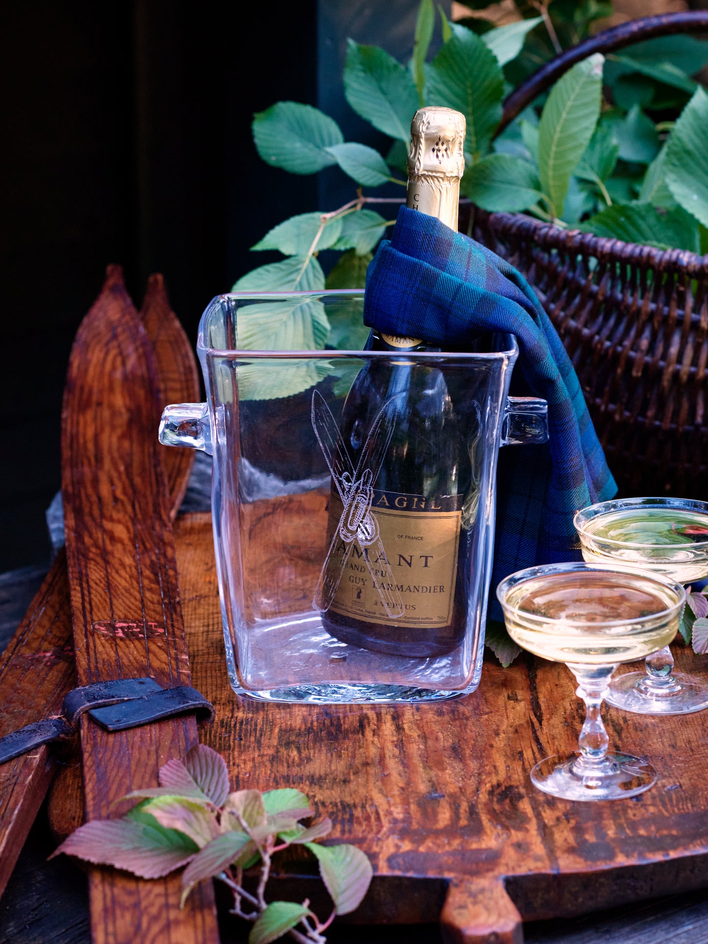 This squared-off glass ice bucket features brilliant flat panes that showcase the clarity of the material. Use it to chill whites, rosés or sparklers, to serve ice on the bar, as an oversized vase, or filled with your favorite keepsakes.