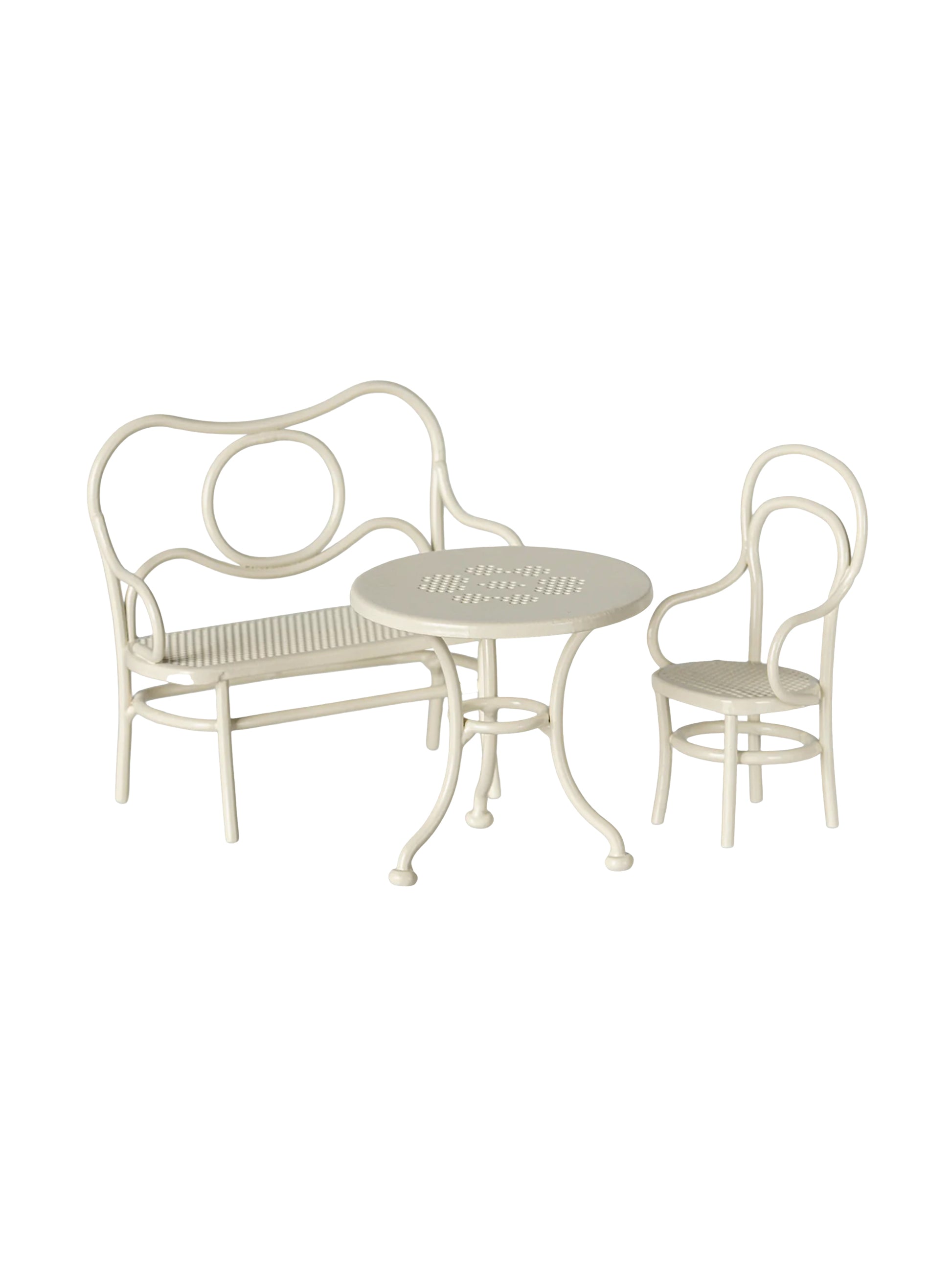 Just in time for afternoon tea, this adorable mouse-sized set includes a Parisian bistro table with a bench for two and a chair, a boxed tea set that includes a teapot, cups, and biscuits and it arrives in a classic rope handled castle hard sided gift bag.