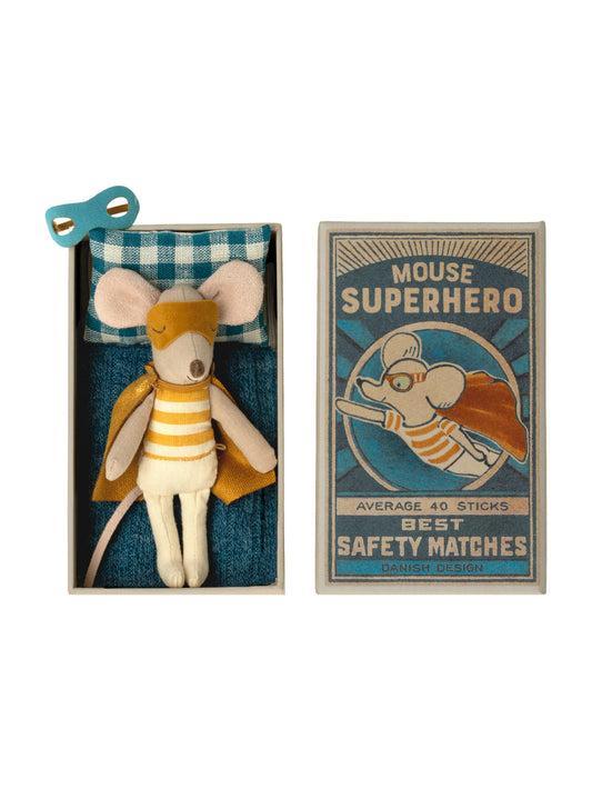 Maileg Superhero Mouse Little Brother In Matchbox