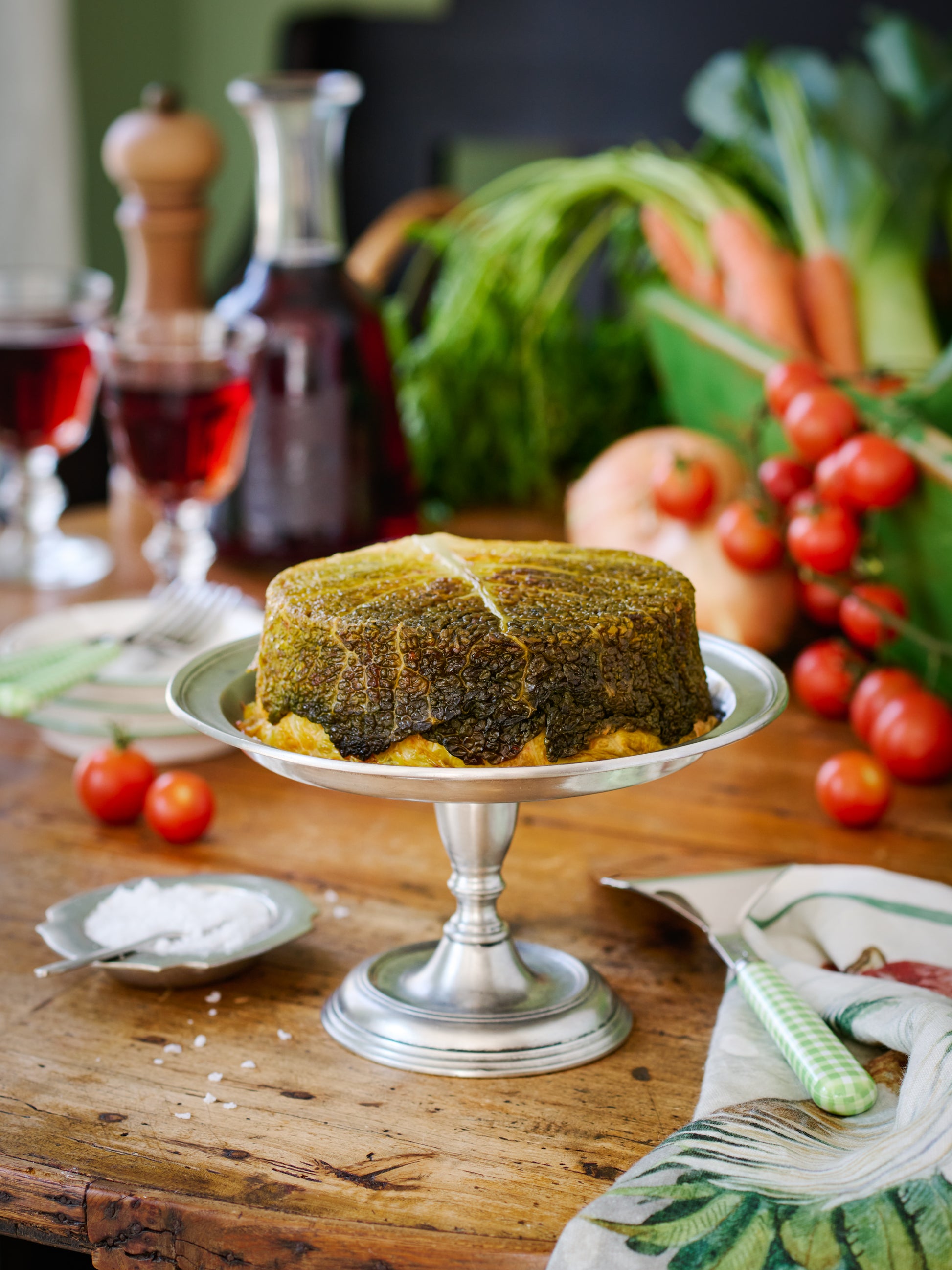 Whether used for a birthday cake, petit four, appetizers, or our own cabbage pie this pedestal tray will elevate any celebration or gathering.
