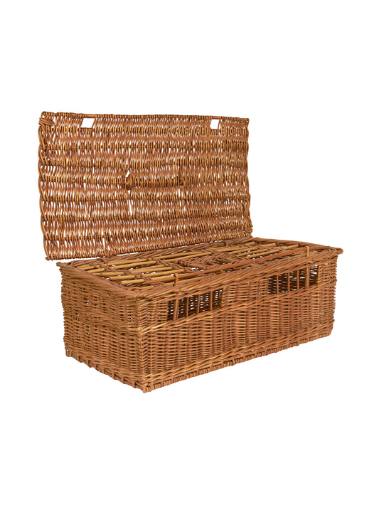 American folk art, the creel has its roots in Scotland and were originally, as most still are today, handmade from wicker and meant to be used to preserve fish after it was caught riverside until it arrived home by lining the interior of the creel with moss or wet ferns to keep the interior cool.