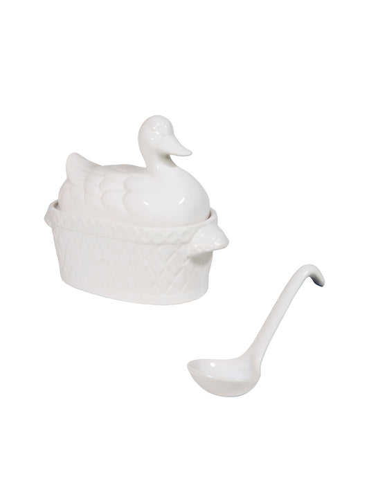 Vintage Japanese Ceramic Duck Tureen with Ladle