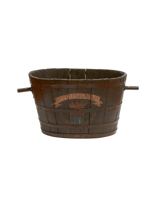 Our curated collection of vintage buckets represents a variety of materials. From English leather buckets traditionally used in England and later America to put out fires in the hearth, to coopered wooden buckets held together with metal banding for storing feed for animals or putting up butter, cider and ale, gun powder, and grains for people, to galvanized lightweight buckets with handles that made it easy to transport and sell flowers at the village market, to Chinese wooden water well buckets from the turn of the 20th century, this collection of buckets represents functional art. The most valuable buckets today are those made by coopers over a century ago when water-tight vessels were made by hand by skilled craftsmen and were often an accepted and recognized measurement for volume.